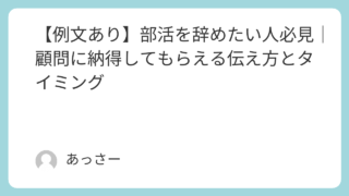 部活 【例文あり】部活を辞めたい人必見|顧問に納得してもらえる伝え方とタイミング 部活を辞めたいと思っても、「顧問にどう伝えればいいのか分からない」と悩む人はとても多いです。厳しい先生だったらどうしよう、引き止められたら断れるかな、と不安になりますよね。実は、部活を辞めるときは気持ちよりも「伝え方」と「準備」が結果を大き... 部活