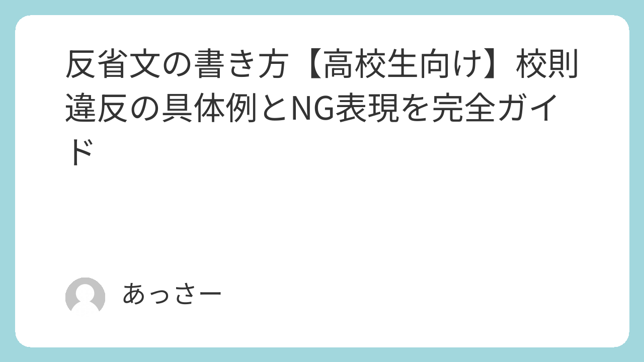 「反省文を書いてきなさい」と言われて、何から書けばいいのかわからない……そんな高校生のあなたへ。