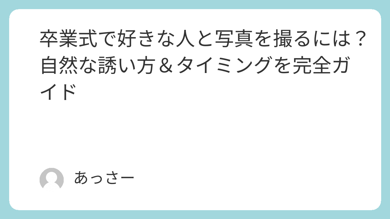 この記事では、そんなあなたのために、自然に写真をお願いする方法から、脈ありの見抜き方、卒業式後にやっておくべき行動まで、徹底的にお伝えしました。