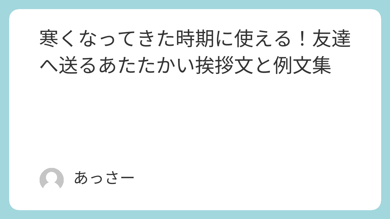 この記事では、寒くなってきた時期にぴったりな友達への挨拶やメッセージの例文を紹介します。