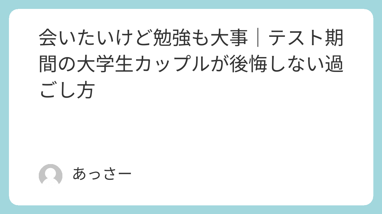 テスト期間になると、大学生カップルの多くが「会いたいけど勉強もしなきゃ」と悩みます。