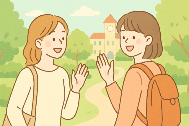 キャンパスで会ったとき 軽く会釈や「久しぶり」と一言声をかけるだけで十分。
