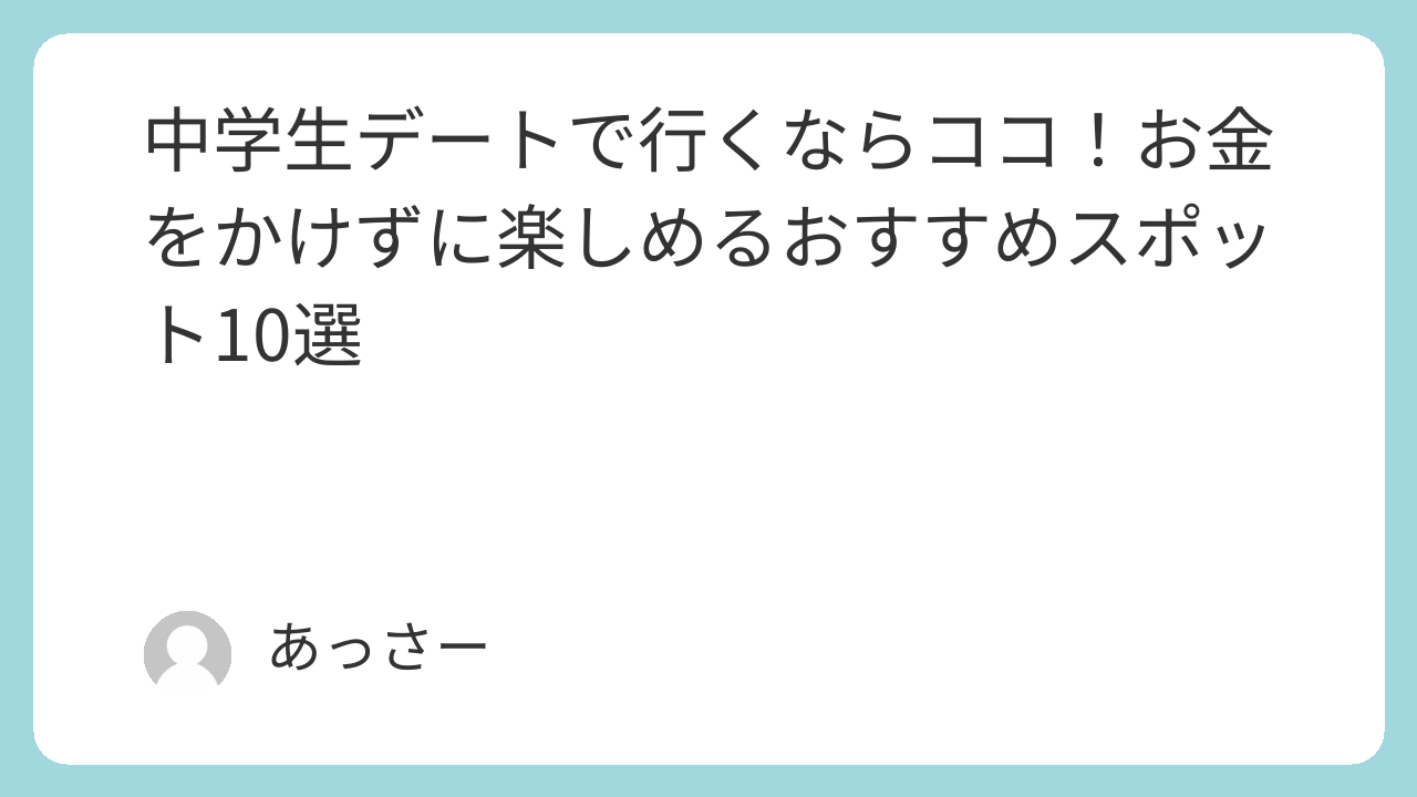 「どこに行けばいいの?」「お金はどのくらい必要?」そんな悩みを抱える中学生カップルも多いはずです。