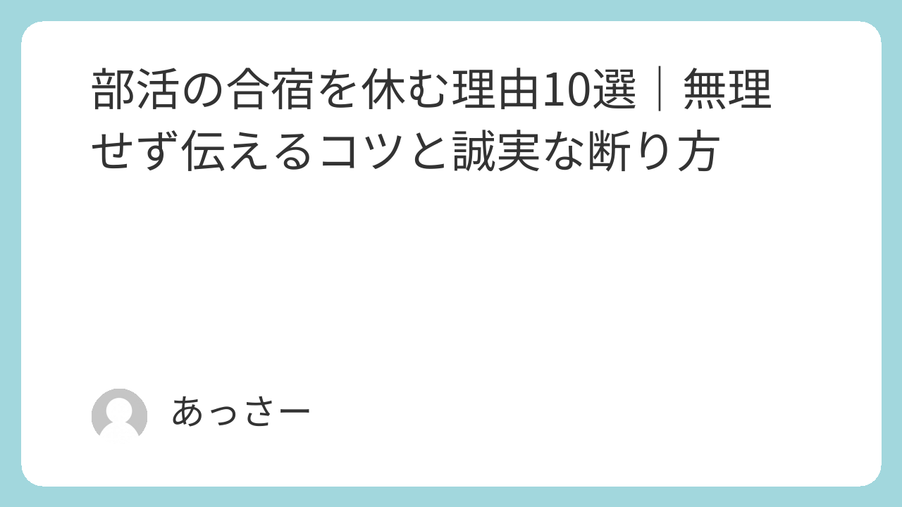 この記事では、部活の合宿を休むときに使える現実的な理由10選と、顧問や先輩に誠実に伝えるコツを紹介します。