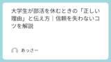 ここまで、合宿を休む理由や伝え方、そして心構えについて紹介してきました。