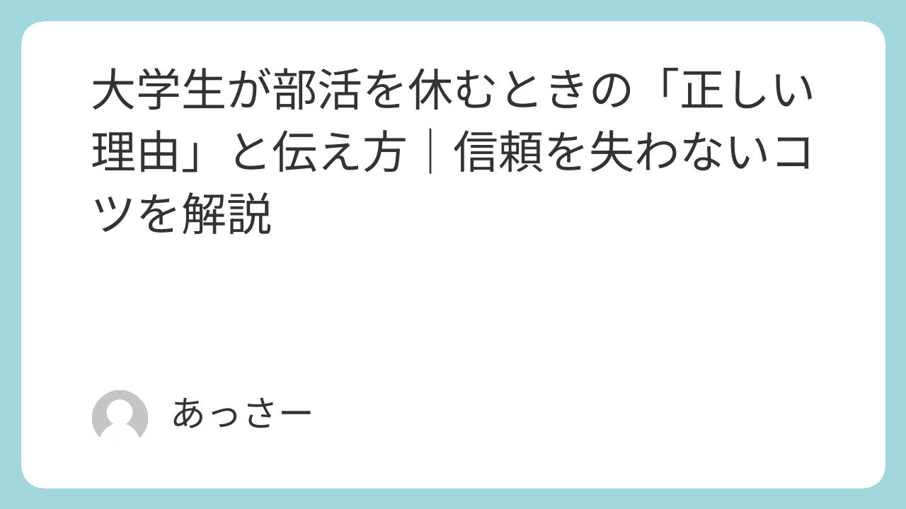 大学生が部活を休むとき、最も大切なのは「どう休むか」です。