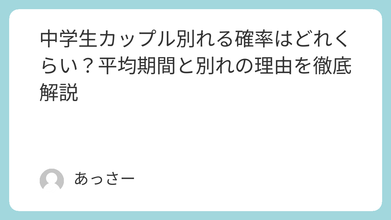 この記事では、中学生カップルが別れる確率を中心に、平均的な交際期間、別れやすい理由、そしてそれでも長く続くカップルの特徴までを分かりやすく解説します。