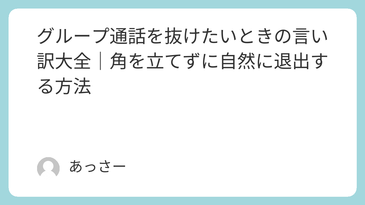 「今この状況なら自然」と思える言い訳を選ぶことが、グループ通話を抜けたいときの最適解です。