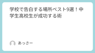学校 学校で告白する場所ベスト9選!中学生高校生が成功する術 学校は、学生たちにとって、気持ちを伝える大切な場所です。もし学校で気になる人に告白を考えているなら、この記事が役立つかもしれません。以下で、特におすすめの場所とその時のタイミングについてご紹介しますので、告白の参考にしてみてください。告白成... 学校