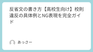 学校 反省文の書き方【高校生向け】校則違反の具体例とNG表現を完全ガイド この記事では、寝坊や遅刻、スマートフォンの使用禁止違反、スカートの長さ違反など、さまざまなシチュエーションで使える反省文の例とその書き方を紹介します。 学校