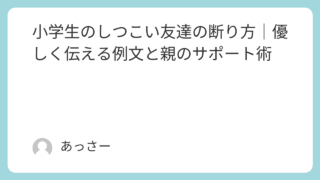 家庭 小学生のしつこい友達の断り方|優しく伝える例文と親のサポート術 「うちの子、友達からしつこく誘われて困っている…」そんな悩みを抱える保護者は少なくありません。小学生にとって友達はとても大切な存在ですが、誘いを断れずに無理をしてしまうこともあります。しかし“断ること”は相手を傷つける行為ではなく、自分を大... 家庭