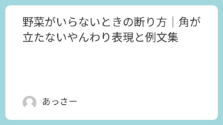 生活 野菜がいらないときの断り方|角が立たないやんわり表現と例文集 ご近所や親戚からの野菜のおすそ分け、ありがたいけれど「正直もういらない…」と思うことはありませんか。断ると角が立ちそうで悩む人は多いですが、実は伝え方ひとつで印象がまったく変わります。この記事では、「冷蔵庫がいっぱいで」「食べきれなくて申し... 生活