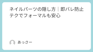 生活 ネイルパーツの隠し方|即バレ防止テクでフォーマルも安心 「ネイル禁止の場面なのに、派手なネイルをしてしまった…」そんな経験はありませんか。特にラインストーンや3Dデザインなどのネイルパーツは、目立ちやすく隠すのが難しいですよね。この記事では、テーピング・ネイルシール・コンシーラー・手袋などを使っ... 生活