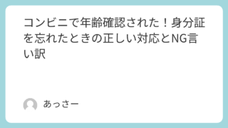 生活 コンビニで年齢確認された!身分証を忘れたときの正しい対応とNG言い訳 「えっ、なんで自分だけ年齢確認されたの?」そんな疑問を持ったことはありませんか。実は、コンビニで行われる年齢確認は“見た目”ではなく、“ルール”によって自動的に行われている仕組みなんです。この記事では、コンビニで年齢確認を求められた理由や、... 生活