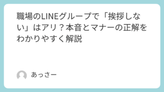 生活 職場のLINEグループで「挨拶しない」はアリ?本音とマナーの正解をわかりやすく解説 職場のLINEグループに招待されたとき、「入ったら挨拶したほうがいいのかな?」と迷うこと、ありますよね。グループ内の雰囲気やメンバーの関係性によっても対応が違うため、正解が分かりづらいテーマです。この記事では、「LINEグループで挨拶しない... 生活