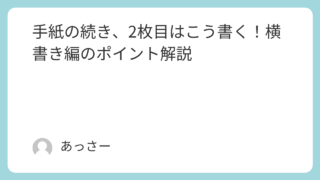 メッセージ 手紙の続き、2枚目はこう書く!横書き編のポイント解説 手紙を書くとき、1枚目で書ききれず2枚目に続くことはよくありますよね。特に横書きの便箋を使う場合、どのように書き始めれば良いのか迷う方も多いのではないでしょうか。この記事では、横書きの手紙における2枚目の書き方やマナーを、初心者の方でも分か... メッセージ